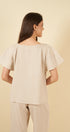 La blusa Sabine, con mangas amplias y delicados bordados, aporta un toque artesanal que eleva instantáneamente el look. Su caída suave y su diseño limpio la hacen una pieza ideal para usar tanto en conjunto como por separado.