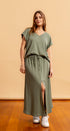 Your Vivian set is a basic, cute, and practical two-piece set: a V-neck polo shirt and a maxi skirt. Just slip it on, and you're comfortable and ready for the whole day—effortlessly stylish.