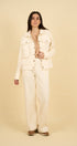 - Relaxed and comfortable fit: structured jacket and trousers with a wide waistband