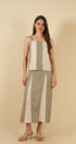 Tu Top Leslie es de lino italiano en colores suaves que se complementan armoniosamente. El BVD de cuello recto aporta un toque moderno y refinado.