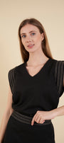 El cuello V estiliza al instante, mientras los bordados en las mangas añaden un toque moderno y sofisticado.