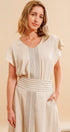 Tu set Mikela es moderno, único y lleno de detalles que lo hacen especial. El diseño combina una blusa con vuelos y escote en V con bordado central, junto a una falda cruzada con pretina ancha y detalles a contraste que estilizan la figura. Ambas piezas están pensadas para ofrecer comodidad sin perder elegancia, logrando un look sofisticado y artesanal a la vez.