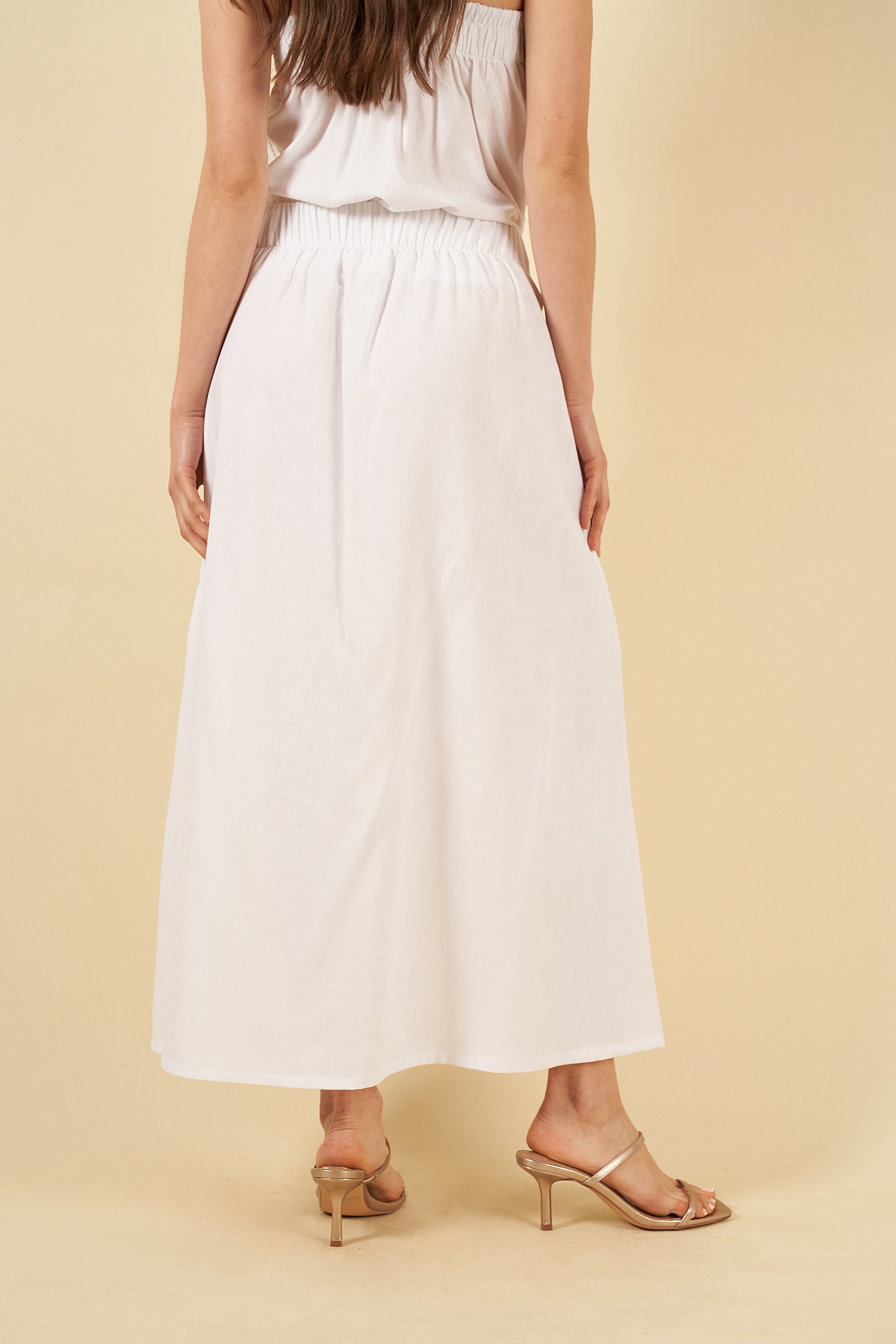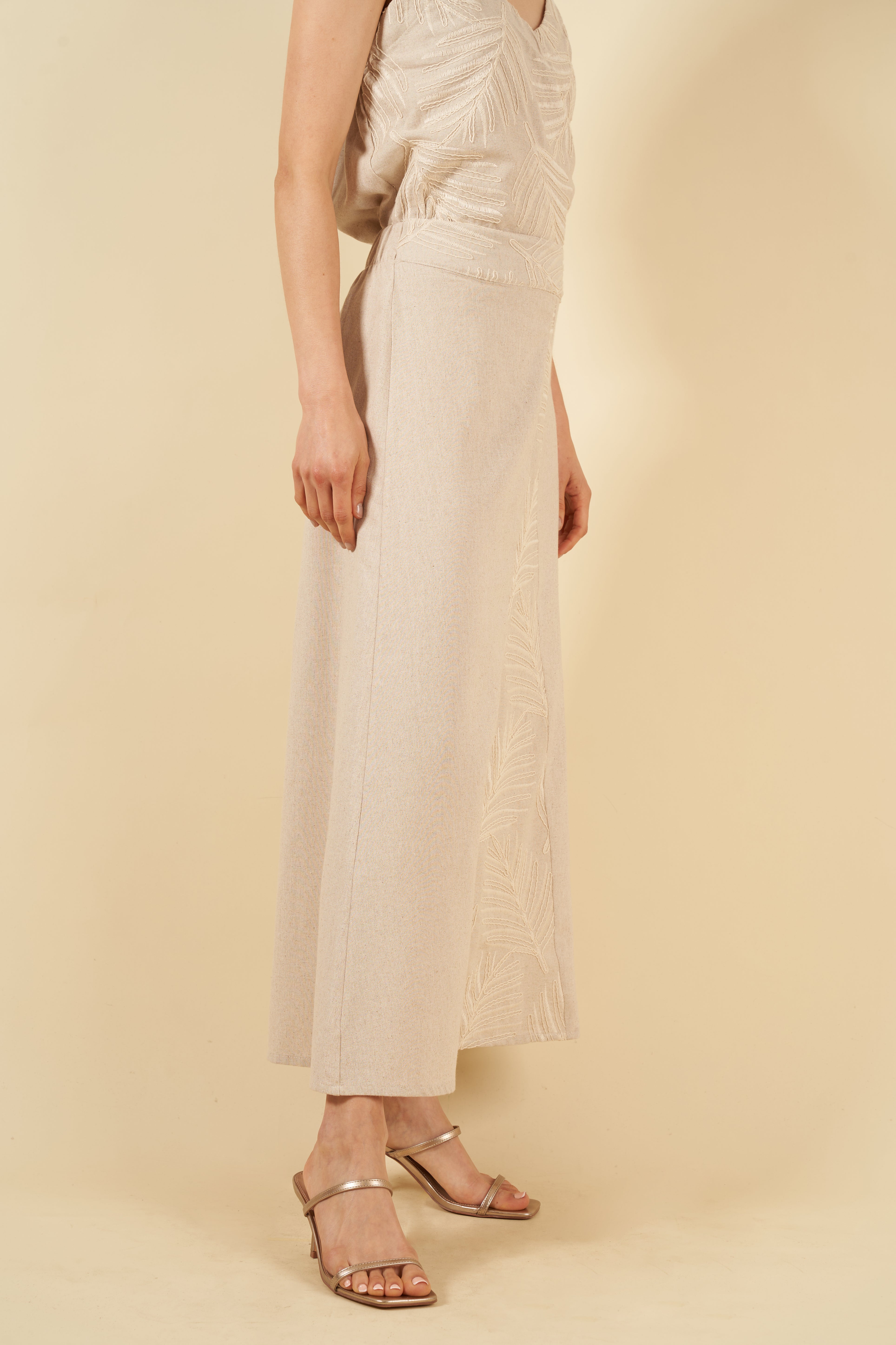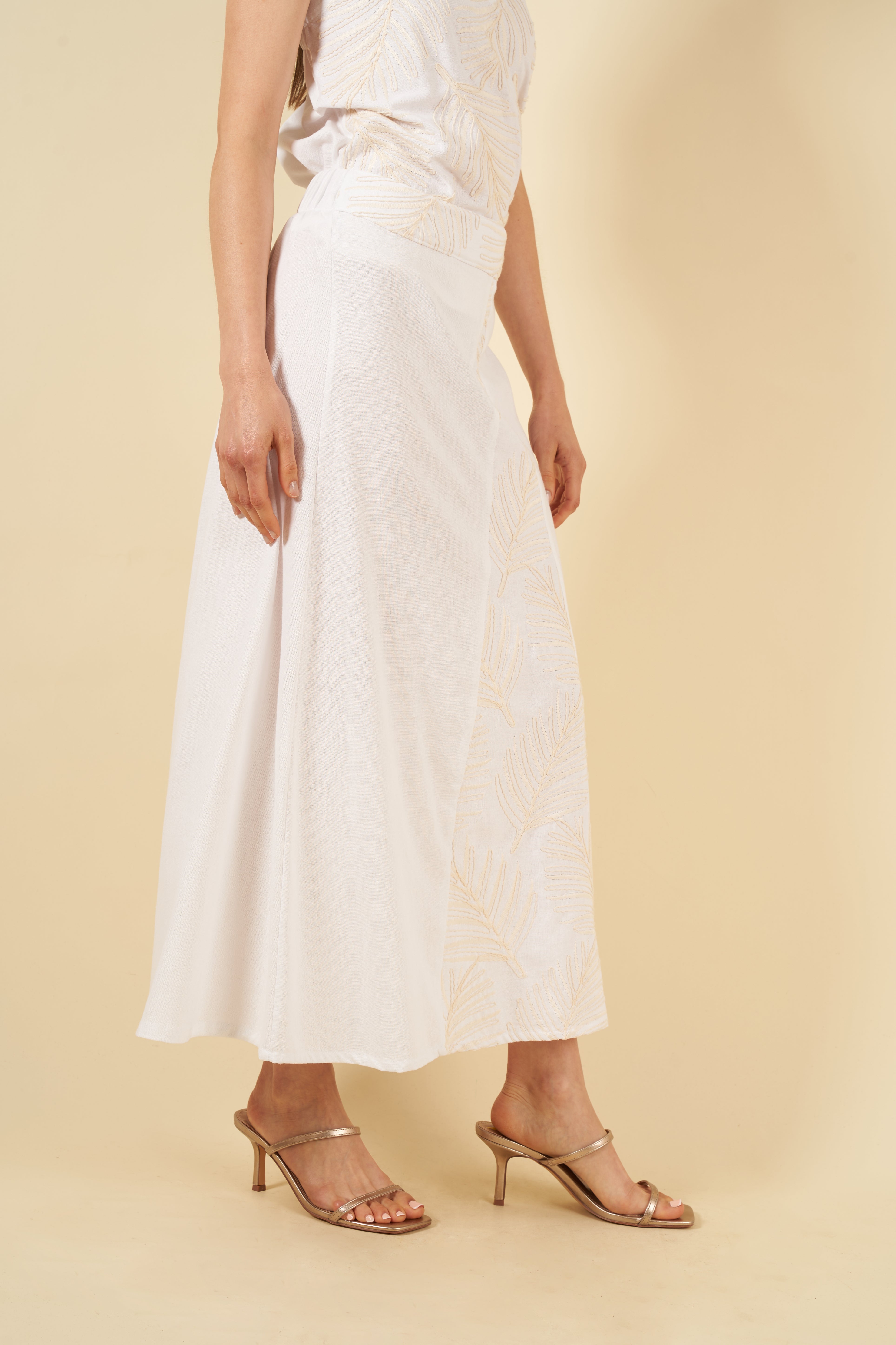 La falda Arlette, de silueta fluida y movimiento suave, combina comodidad y estilo gracias a los paneles bordados que aportan dimensión y un toque distintivo. En la parte posterior, un elástico discreto garantiza un calce agradable y adaptable sin perder elegancia.