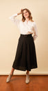 - Falda plisada con bolsillos y cintura elastizada en la parte posterior.