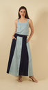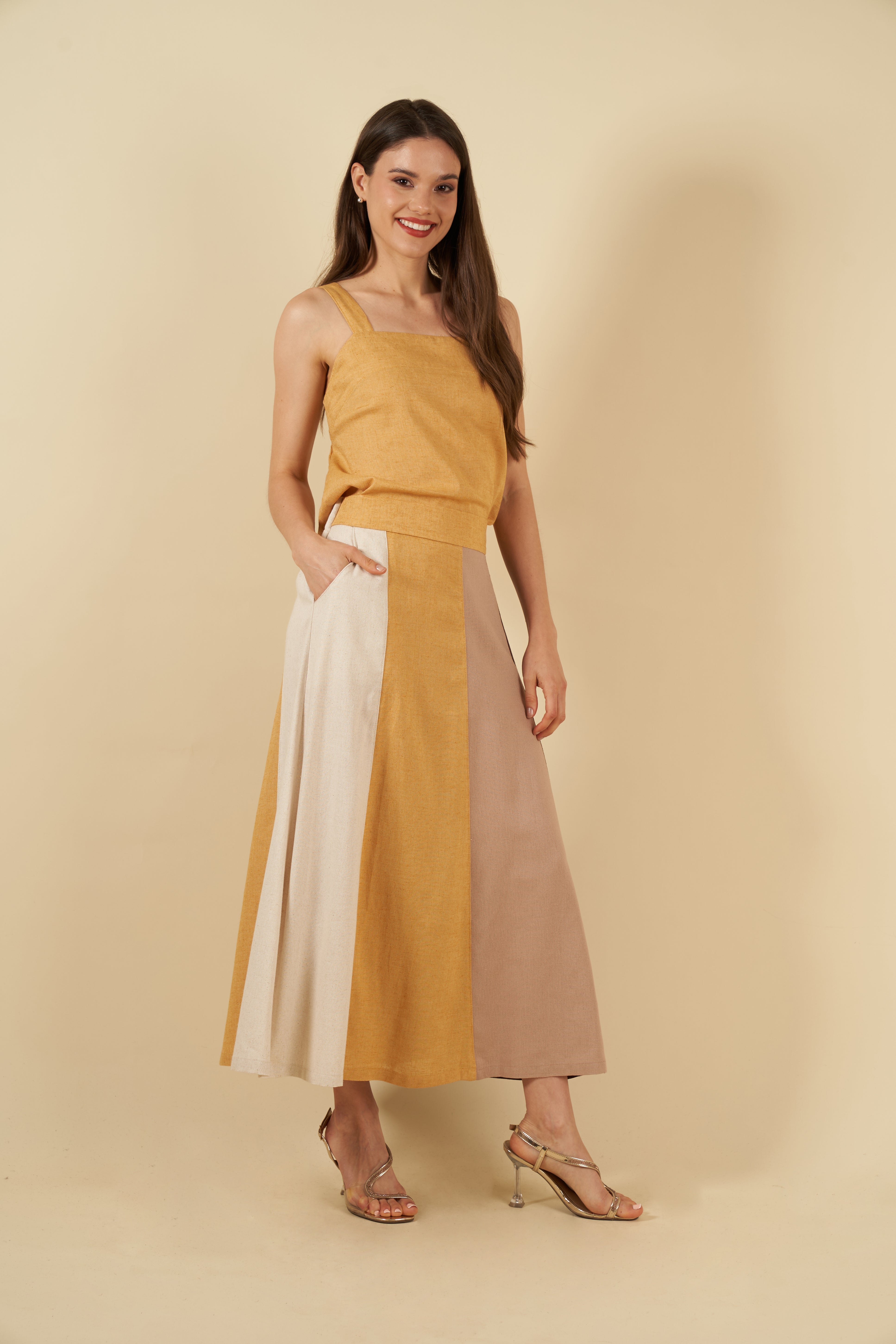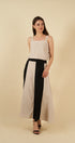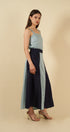 - Falda bicolor con bolsillos laterales.