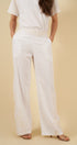 El pantalón de pierna recta es pura comodidad: cuenta con bolsillos laterales y elástico en la espalda para un ajuste flexible y favorecedor. Los bordados en los laterales añaden un detalle distintivo que lo hace único.