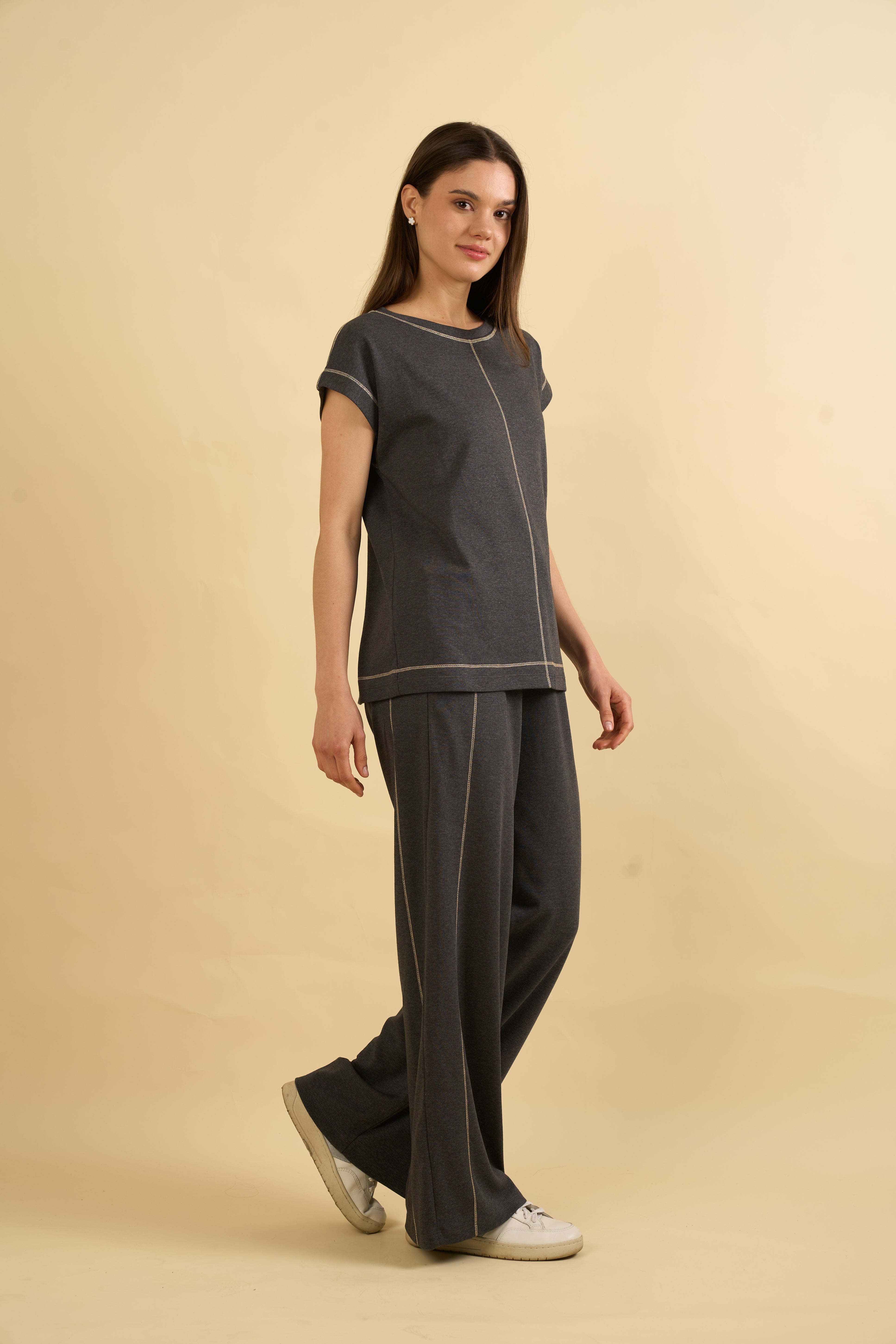 El polo tiene un corte moderno con detalles sutiles y un fit relajado, mientras que el pantalón tiene una pretina cómoda y una caída ligera. Ideal para días de descanso, home office o simplemente para sentirte bien.