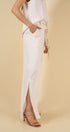 - Lino italiano con viscosa: suave, fresco y con una caída natural que favorece la silueta.