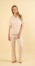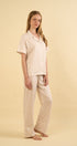 Anelisse es nuestra pijama de 100% algodón pima peruano premium, ligera, suave y fresca sobre tu piel. La camisa tiene un fit relajado y moderno, y el pantalón con cintura elástica suave te acompaña con total comodidad. Perfecta para descansar con estilo.