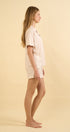 Alicia es nuestra pijama de 100% algodón pima peruano premium, ligera, suave y fresca sobre tu piel. La camisa tiene un fit relajado y moderno, y el short con cintura elástica suave te acompaña con total comodidad. Perfecta para descansar con estilo.