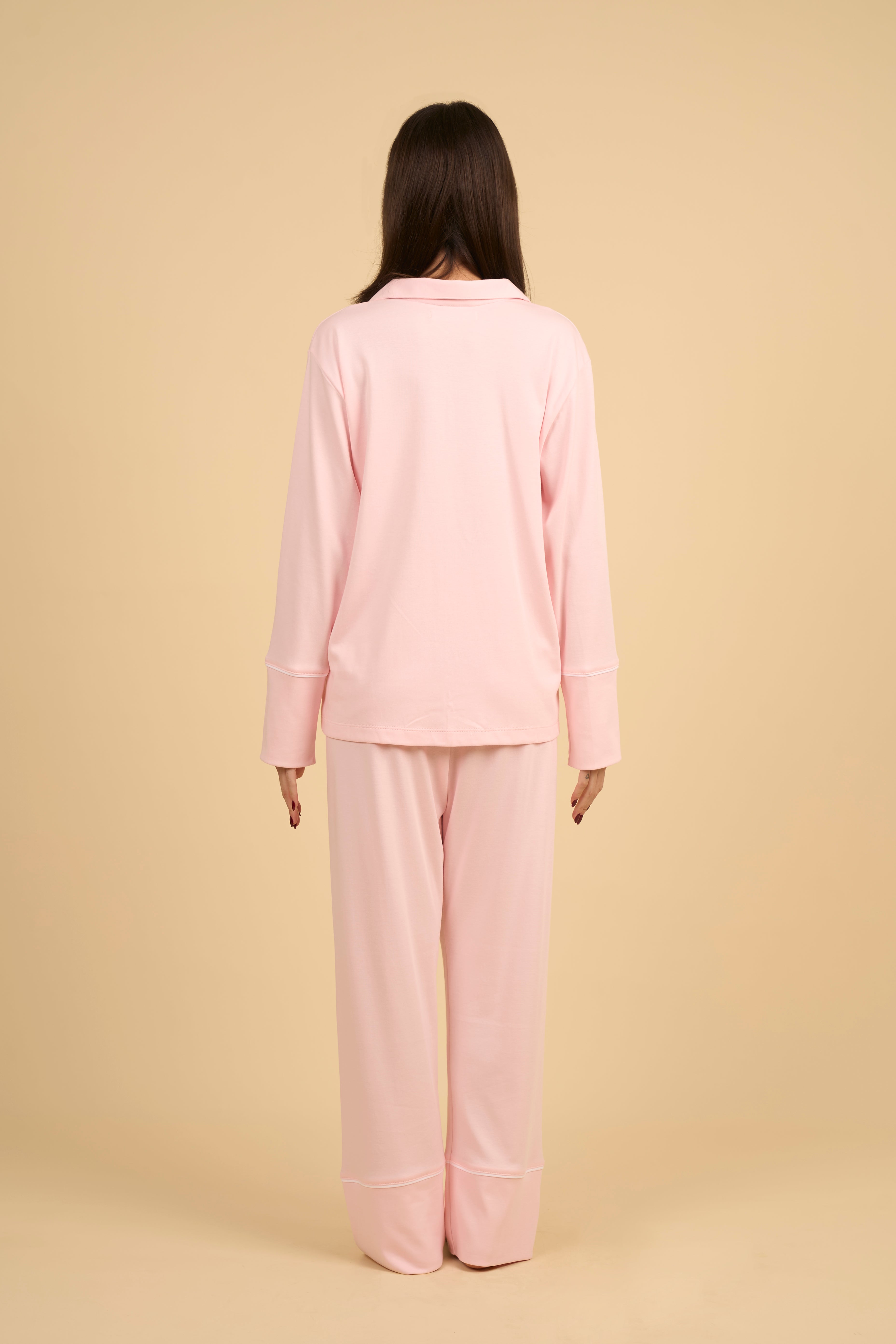 Confeccionada en algodón pima peruano premium tejido interlock extra suave, la Pijama Esperanza combina comodidad y delicadeza en un tono rosa lleno de significado.