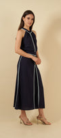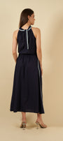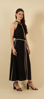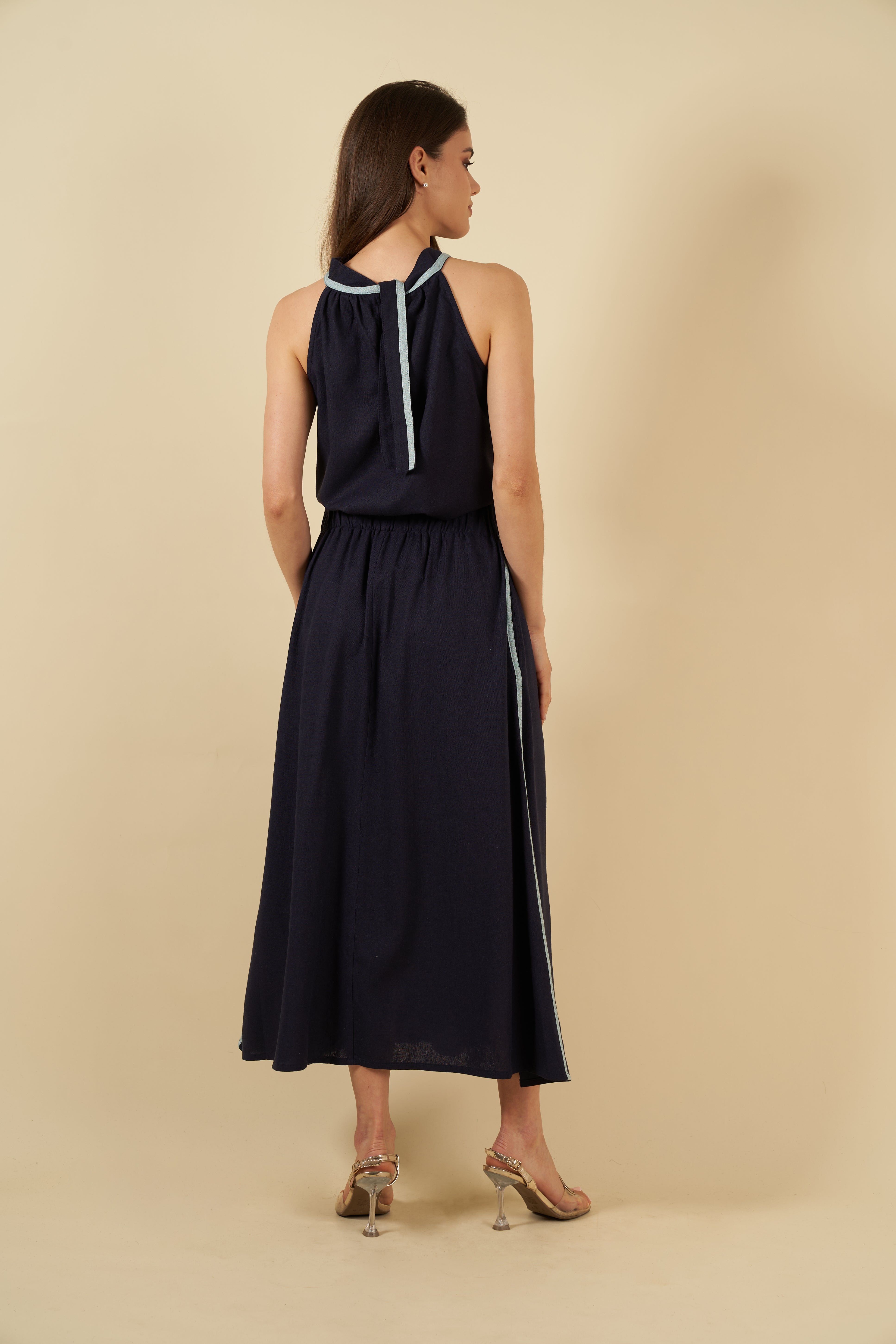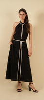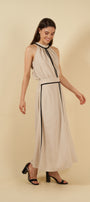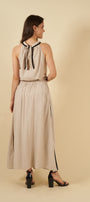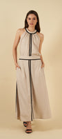El contraste de color añade un toque distintivo sin perder la naturalidad del lino, logrando un look versátil para días cálidos, salidas especiales o un estilo casual elevado.