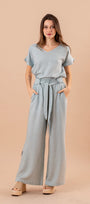 Tu set Luisa Fernanda es súper versátil, cómodo y elegante. Puedes usar sus dos piezas juntas o por separado, logrando distintos outfits sin perder estilo. El pantalón tiene corte recto, calce suelto y un detalle especial en la parte inferior que estiliza la figura de forma natural. La blusa de manga raglán tiene una caída ligera y favorecedora, con cuello en V y un fit relajado que aporta comodidad y frescura.