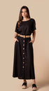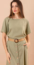Tu set Mariana es súper versátil, cómodo y elegante. Puedes usar sus tres piezas juntas o por separado para lograr diferentes outfits, y siempre estarás regia. La falda tiene botones de concha de coco al frente, bolsillos laterales y elástico en la cintura posterior, que se adapta a tu figura. La blusa, ligera y con caída increíble, tiene un diseño moderno que realza el look. Finalmente, la correa, de soguilla con filo de cuero y hebilla de concha de coco, completa el conjunto con un toque artesanal.
