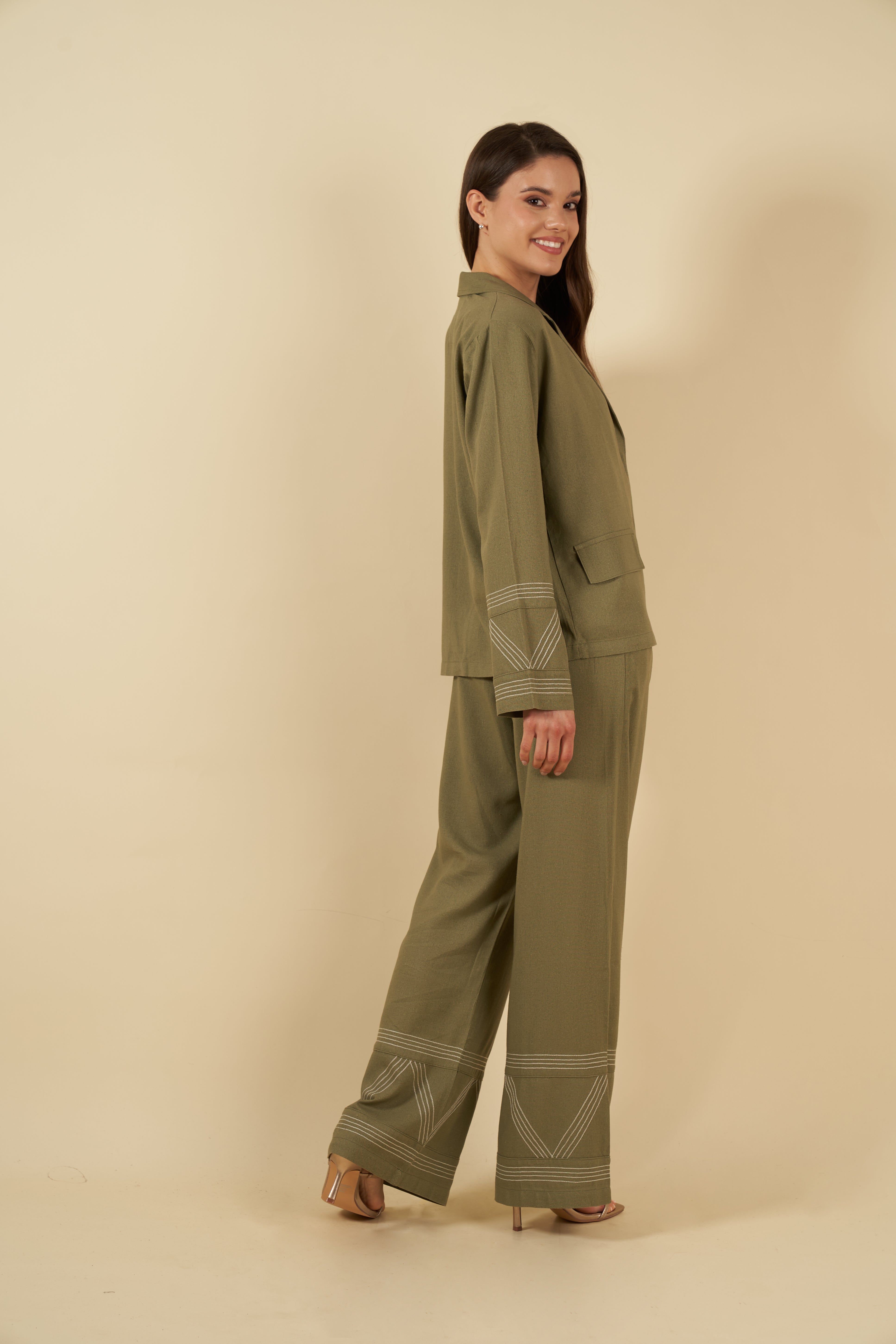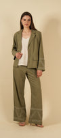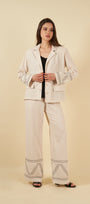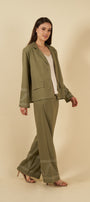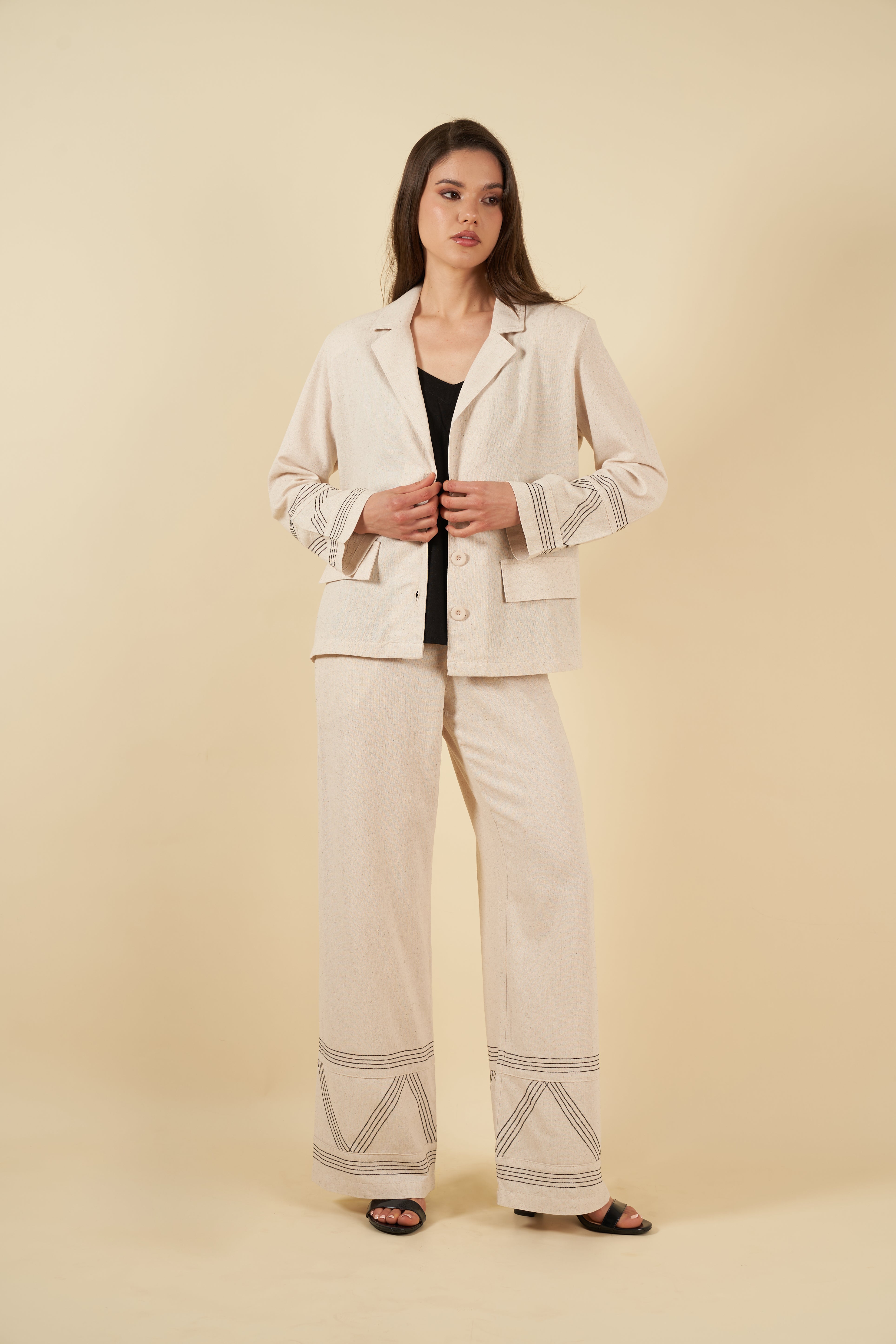 Descubre el Set Aurelia de saco y pantalón, la combinación perfecta de frescura, elegancia y detalles artesanales para esta temporada. Confeccionado en la mezcla premium de lino italiano con viscosa, ofrece una textura suave, una caída espectacular y la ligereza ideal para los días cálidos.