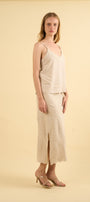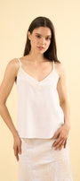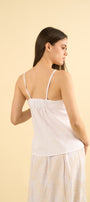 Los tirantes finos equilibran la pieza con un aire etéreo y minimalista, mientras que la espalda mantiene una apariencia limpia y lisa, incorporando un práctico elástico en la parte superior para ofrecer mayor comodidad, adaptabilidad y un calce perfecto sin perder elegancia.