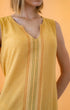 Tu vestido Ana Lia es un modelo súper sentador y favorecedor para todas. Su diseño con cuello V, detalle de líneas bordadas en la parte delantera y manga cero lo hace moderno, cómodo y femenino. Incluye una cinta en la cintura para ajustarlo según tu estilo y figura.